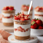 These High-Protein Cheesecake Jars are a delicious, no-bake treat combining a crunchy graham cracker crust with a creamy, protein-packed cheesecake filling made from Greek yogurt, cream cheese, and vanilla protein powder. Perfect for a healthy dessert or snack, they are quick to assemble, customizable with toppings like fresh strawberries, and ideal for a nutritious indulgence.