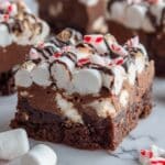 Keywords: hot chocolate fudge, peppermint fudge, no bake fudge, holiday dessert, peppermint candy fudge, chocolate marshmallow fudge