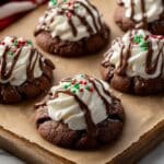 - Optional Garnish: Drizzle melted chocolate over the frosted cookies or sprinkle with crushed candy canes to add festive flair and extra flavor.