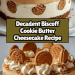 This Indulgent Biscoff Cookie Butter Cheesecake is a dreamy dessert that combines the rich, spiced flavors of Biscoff cookies with a creamy, smooth cheesecake. Perfect for special occasions or whenever you crave a decadent treat, this recipe is sure to impress.