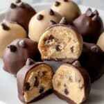 - Dip Dough Bites: Completely coat each chilled dough ball by dipping it into the melted chocolate, ensuring full coverage.