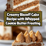 Keywords: Biscoff cake, cookie butter cake, Biscoff frosting, whipped Biscoff cream, easy dessert, layered cake, caramel cookie spread cake