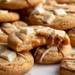 Keywords: white chocolate cookies, caramel cookies, chewy cookies, baked cookies, dessert recipes, homemade cookies, holiday cookies