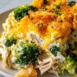 This Low Carb Chicken Casserole is a creamy, cheesy comfort dish perfect for those following a low-carb diet. It combines tender cooked chicken with sautéed broccoli and cauliflower, wrapped in a rich cream cheese and heavy cream sauce, topped with melted cheddar cheese and baked to golden perfection.