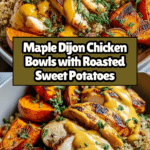 Keywords: maple Dijon chicken, sweet potato bowls, roasted sweet potatoes, quinoa bowls, healthy lunch, easy chicken recipe, comfort food