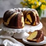 Classic Marble Cake featuring moist vanilla and chocolate swirls, perfectly balanced and baked to golden perfection. This timeless loaf cake combines a buttery base with rich cocoa for a visually stunning and delicious dessert perfect for any occasion.