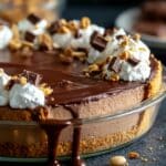 Keywords: no bake peanut butter pie, cream cheese peanut butter pie, chocolate whipped cream pie, easy no-bake dessert, creamy peanut butter pie