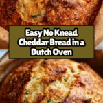 This no-knead cheddar bread baked in a Dutch oven is a simple yet flavorful loaf with a golden crust and cheesy aroma. With minimal effort, you can enjoy fresh homemade bread that’s perfect for sandwiches or alongside your favorite soup.