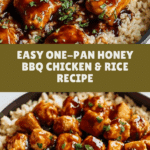 Keywords: one-pan chicken recipe, honey BBQ chicken, chicken and rice skillet, easy weeknight dinner, stovetop chicken and rice
