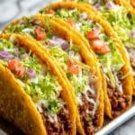 - Assemble Tacos: Spoon the meat mixture evenly into the warmed taco shells. Generously sprinkle shredded cheddar cheese or Mexican cheese blend over the meat-filled shells. Place the filled tacos standing side by side in the prepared baking dish.