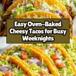 Oven-baked cheesy tacos are a delicious and easy way to enjoy a classic favorite with a melty, crispy twist. Perfect for weeknight dinners or casual gatherings, this recipe combines savory seasoned meat with gooey cheese and fresh toppings.