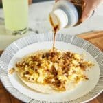 - Assemble breakfast tacos: Use the cooked pancakes as soft tortilla shells. Add a portion of the fried potatoes, sausage, and cheesy scrambled eggs on top. Drizzle with maple syrup for a delightful sweet and savory contrast. Fold the pancakes to form tacos and serve immediately.