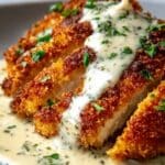 This Parmesan Crusted Chicken with Creamy Garlic Sauce is a deliciously crispy and flavorful dish that feels indulgent yet easy to prepare. The crunchy coating pairs perfectly with a rich, garlicky cream sauce, making it a satisfying meal for any night of the week.