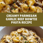 This creamy Parmesan Garlic Beef Bowtie Pasta is a comforting and flavorful dish combining tender ground beef, aromatic garlic, and a rich Parmesan sauce coating perfectly cooked bowtie pasta. It’s a hearty meal perfect for a satisfying midweek dinner.