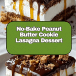 This Peanut Butter Cookie Lasagna is a no-bake, creamy, and indulgent dessert featuring layers of peanut butter sandwich cookies, a smooth peanut butter cream cheese filling, and light whipped topping. Perfectly chilled and topped with crunchy peanuts, it offers a delightful combination of textures and rich peanut butter flavor in a simple layered dessert.