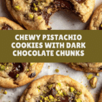 Keywords: pistachio cookies, chocolate pistachio cookies, homemade pistachio cookies, nutty cookies, chocolate chunk cookies, holiday cookies, soft and chewy cookies