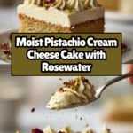 Keywords: pistachio cake, cream cheese frosting, rosewater cake, nutty dessert, moist pistachio cake, floral flavored cake