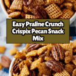 Praline Crunch Crispix Pecan is a sweet, crunchy snack combining crispy Crispix cereal with toasted pecan halves, coated in a buttery praline syrup. This homemade treat is baked slowly to create a caramelized, crunchy texture perfect for snacking or gifting.