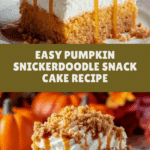 This Pumpkin Snickerdoodle Snack Cake is a delightful fall-inspired dessert that combines the warm flavors of pumpkin and cinnamon with a moist cake base. Made easy with a boxed yellow cake mix and enriched by a pumpkin puree batter, it’s baked to perfection, then soaked with sweetened condensed milk for extra moisture and sweetness. Topped with creamy Cool Whip, crunchy Heath bits, and a generous drizzle of caramel sauce, this cake offers a luscious combination of textures and tastes perfect for celebrations or cozy gatherings.