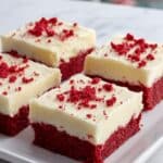 - Frost and Serve: Spread the cream cheese frosting evenly over the cooled bars. Optionally, sprinkle with red velvet crumbs for decoration. Slice into bars and serve.