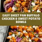 Keywords: Sheet pan dinner, buffalo chicken, sweet potato bowls, roasted vegetables, healthy dinner, easy weeknight meal