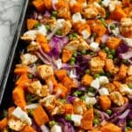 Keywords: Sheet pan dinner, buffalo chicken, sweet potato bowls, roasted vegetables, healthy dinner, easy weeknight meal
