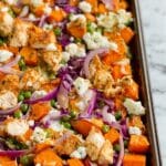 Keywords: Sheet Pan, Buffalo Chicken, Sweet Potato, Roasted Vegetables, Easy Dinner, One Pan Meal