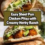 This Sheet Pan Chicken Pitas recipe offers a delicious and easy weeknight meal featuring roasted chicken and colorful bell peppers seasoned with warm spices, complemented by a creamy, fresh herby ranch sauce. Served in warm pita pockets with fresh veggies and optional toppings, it’s a flavorful and satisfying dish perfect for busy evenings or casual gatherings.