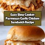 These Slow Cooker Parmesan Garlic Chicken Sandwiches are a perfect solution for busy nights, combining tender slow-cooked chicken infused with Parmesan, garlic, and herbs, served on toasted buttery sandwich rolls with melted mozzarella for a comforting and flavorful meal.