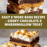 These delicious S’more Bars are a simple and indulgent dessert featuring a buttery graham cracker crust layered with gooey melted chocolate and toasted mini marshmallows. Perfectly baked to golden perfection, they bring the classic campfire s’mores flavor into an easy-to-make bar form, ideal for sharing and serving at any occasion.