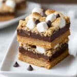 Keywords: s’mores cookie bars, s’mores bars, chocolate marshmallow bars, graham cracker cookie bars, campfire dessert