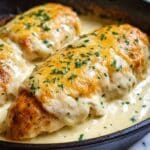This Smothered Cheesy Sour Cream Chicken is a creamy, cheesy baked chicken dish perfect for a comforting dinner. Tender chicken breasts are topped with mozzarella and smothered in a savory sour cream and Parmesan sauce, flavored with herbs and spices, then baked to golden perfection. It’s an easy-to-make meal that pairs wonderfully with rice or mashed potatoes for a satisfying family-friendly entree.