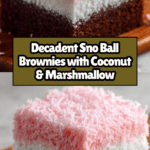 Delightfully rich and fudgy brownies topped with a creamy marshmallow layer and a generous sprinkle of shredded coconut for a fun and festive Sno Ball treat. Perfect for parties or a sweet snack!