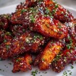 - Garnish and Serve: Sprinkle the coated wings with sesame seeds and sliced green onions for a fresh and nutty garnish. Serve immediately while hot and enjoy!