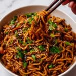 Sticky Garlic Chicken Noodles are a flavorful and easy-to-make main course combining tender chicken pieces coated in a sweet and savory garlic sauce, tossed with perfectly cooked noodles. This recipe delivers a satisfying balance of sticky, garlicky, and mildly spicy flavors, making it a delicious meal for any night of the week.