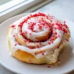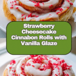Keywords: strawberry cheesecake rolls, cinnamon rolls, cream cheese rolls, strawberry filling pastry, vanilla glaze cinnamon rolls, holiday breakfast, brunch dessert