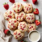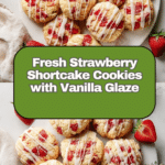 These Strawberry Shortcake Cookies are a delightful twist on the classic dessert, featuring soft, tender cookies packed with fresh strawberries and optional white chocolate chips. Topped with a sweet vanilla glaze and a sprinkle of raw cane sugar for extra crunch, they’re perfect for summer treats or anytime you crave a fruity, indulgent cookie.