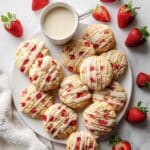 These Strawberry Shortcake Cookies combine the tender, buttery texture of classic shortcakes with bursts of fresh strawberry flavor and a sweet vanilla glaze. Soft and slightly cakey, these cookies are studded with fresh diced strawberries and optional white chocolate chips for an added touch of sweetness, then topped with a light vanilla glaze for a perfect finish. Ideal for spring and summer gatherings, these cookies offer a delightful twist on the traditional strawberry shortcake dessert in an easy-to-eat cookie form.