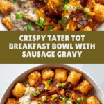 The Tater Tot Breakfast Bowl is a hearty and satisfying morning meal that brings together crispy tater tots, fluffy scrambled eggs, savory sausage gravy, and melted cheddar cheese. It’s a comforting dish perfect for family weekends or a special breakfast treat.