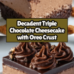 Keywords: Triple Chocolate Cheesecake, Oreo Crust, Chocolate Ganache, Decadent Dessert, Chocolate Lover Recipe, Cream Cheese Dessert, Baked Cheesecake