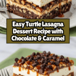 Turtle Lasagna is a no-bake layered dessert that combines rich chocolate, creamy cheesecake, and caramel flavors for a delightful treat. With a crunchy cookie crust and a luscious mix of pudding and whipped toppings, it’s perfect for gatherings or satisfying your sweet tooth at home.