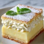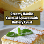 Vanilla Custard Cream Squares are a luscious dessert featuring a buttery baked crust topped with a rich, creamy vanilla custard filling folded with whipped cream for extra lightness. Finished with a dusting of powdered sugar and optional fresh mint garnish, these squares are perfect for an elegant treat or special occasion.