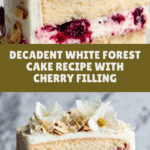 Keywords: White Forest Cake, White Chocolate Cake, Cherry Filling, Cream Cheese Frosting, Layer Cake, White Chocolate Dessert