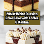 The White Russian Poke Cake is a decadent and moist dessert inspired by the classic White Russian cocktail. Featuring a light yellow cake base infused with strong brewed coffee, a rich Kahlua butter glaze that seeps into the cake’s holes, and topped with a creamy whipped topping, this cake offers a perfect balance of boozy depth and sweetness. Ideal for coffee and cocktail lovers, it’s a show-stopping treat that’s simple to prepare yet impressive to serve at any gathering.